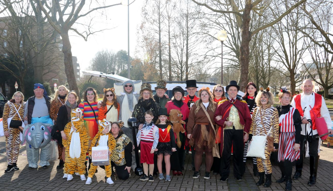 Unsere Gruppe trifft sich am Tulpensonntag, 15. Februar 2026, ab 13.00 Uhr auf dem Kreuzweiherplatz. Das Foto stammt aus dem Vorjahr. Okerke Alaaf!